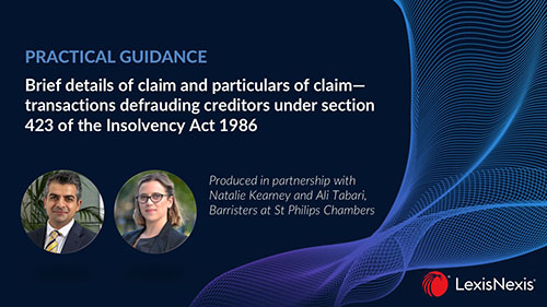 Brief details of claim and particulars of claim—transactions defrauding creditors under section 423 of the Insolvency Act 1986: